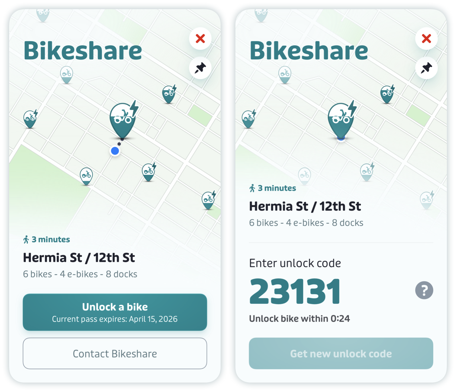 - If you’re signed in and your bikeshare account is already connected, you will see the unlock code.