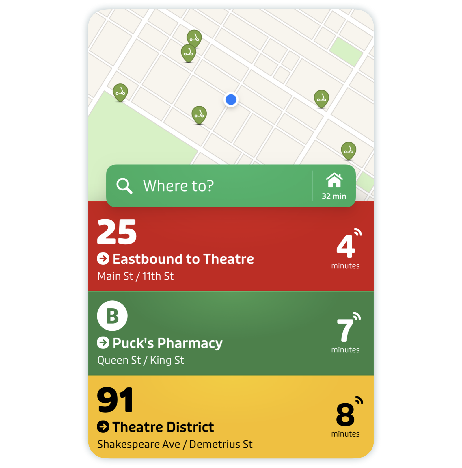 You can use Transit to view nearby bikeshare and scooter stations to help make your commute even more convenient.