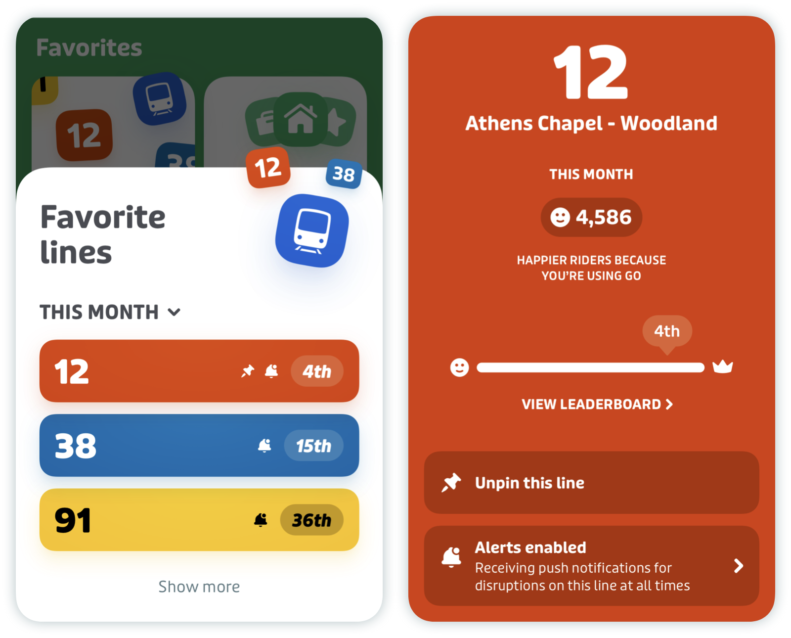 Pin your most used transit lines