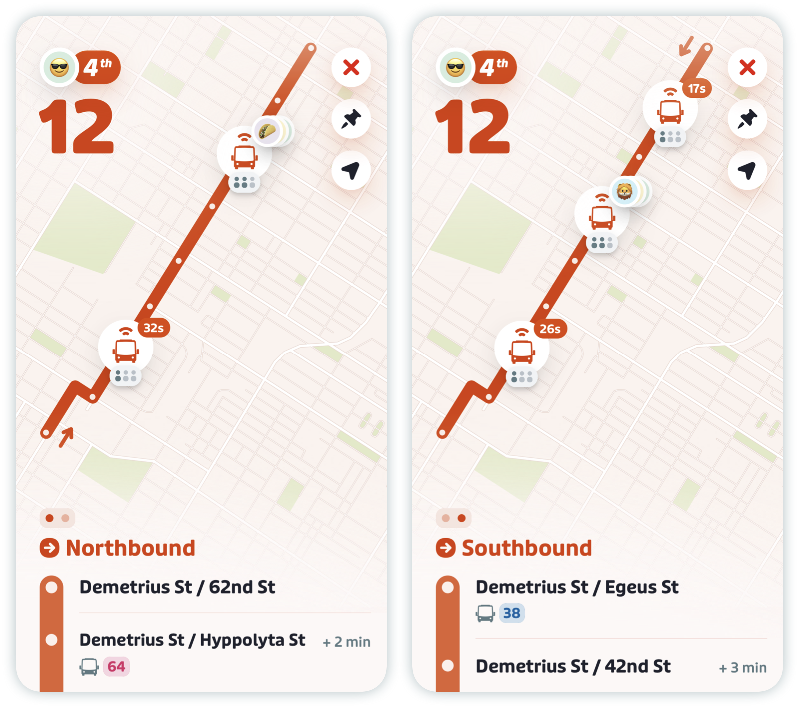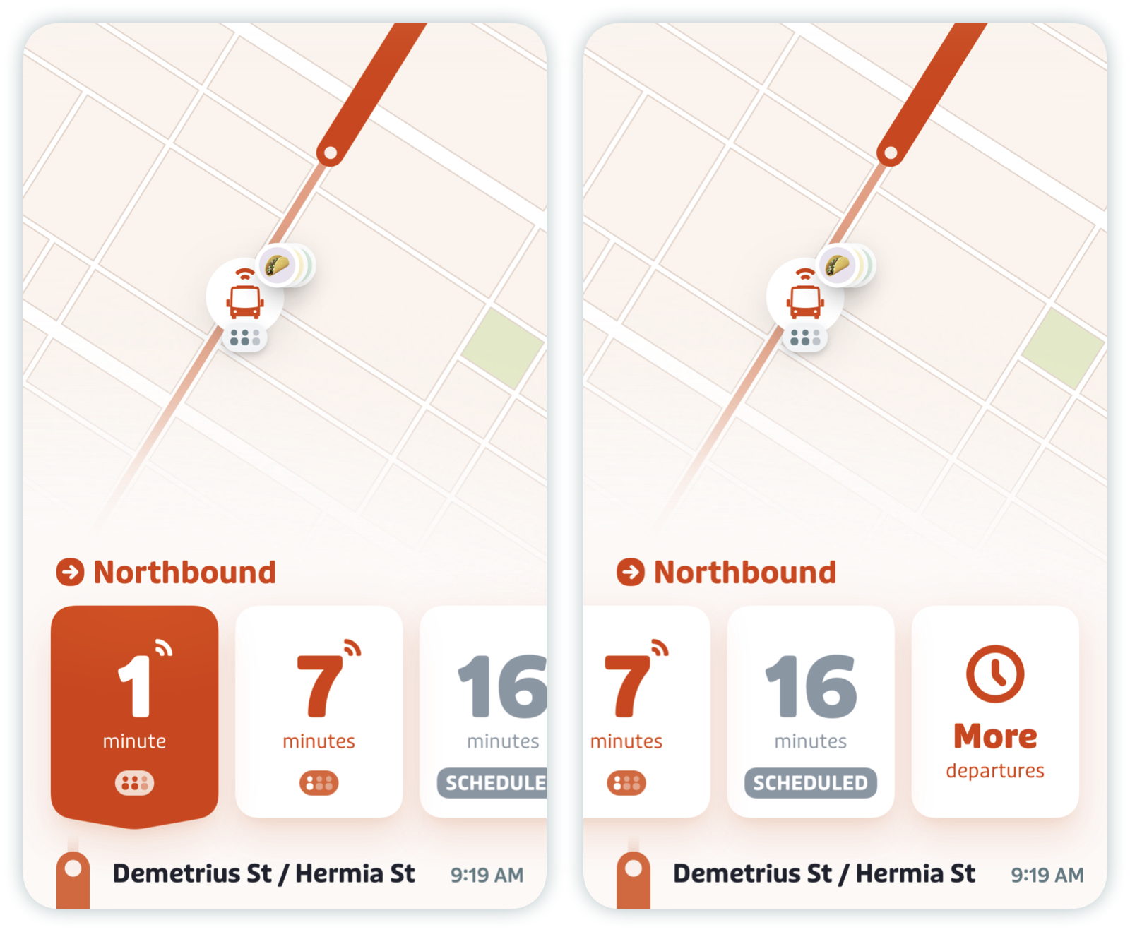 Here’s how real-time arrivals appear in the ETA cards and the schedule screen.