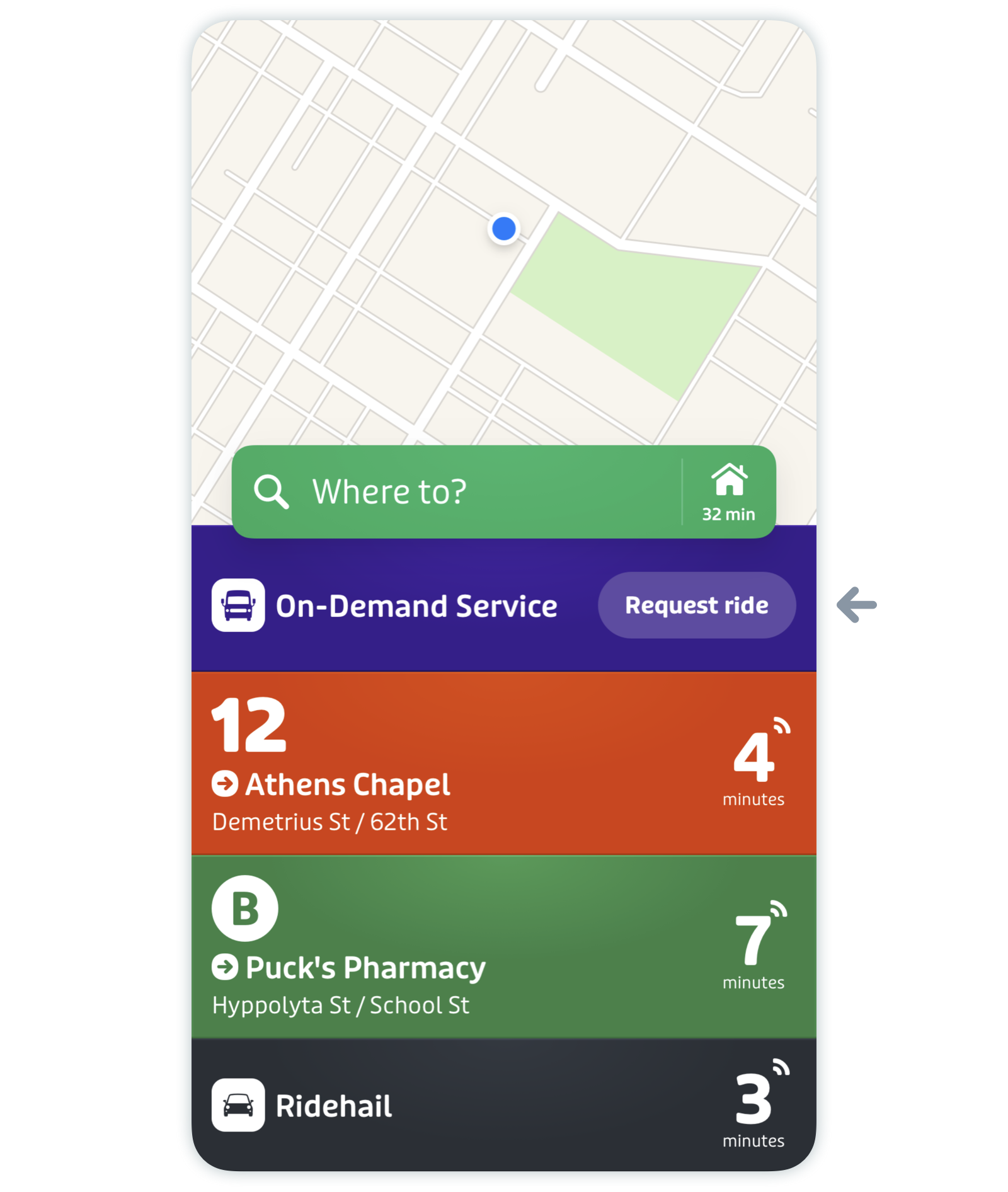 Pro tip: If the on-demand portion of your trip comes after a fixed-route bus, make sure to order your ride a couple of minutes before you get to your stop.