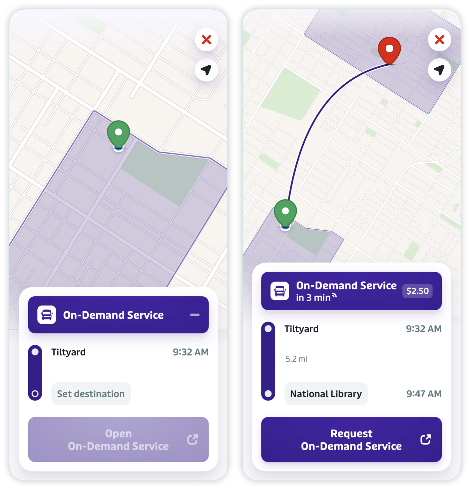 Fill in your destination and tap "Request [On-Demand Service]" to open your area’s on-demand services application and book your ride. If it’s not already downloaded, you’ll be redirected to the App Store or Google Play Store to download it.