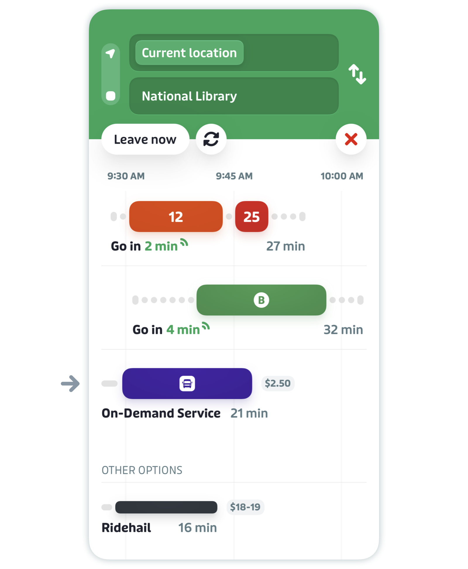 Tap on the trip result offering on-demand service.