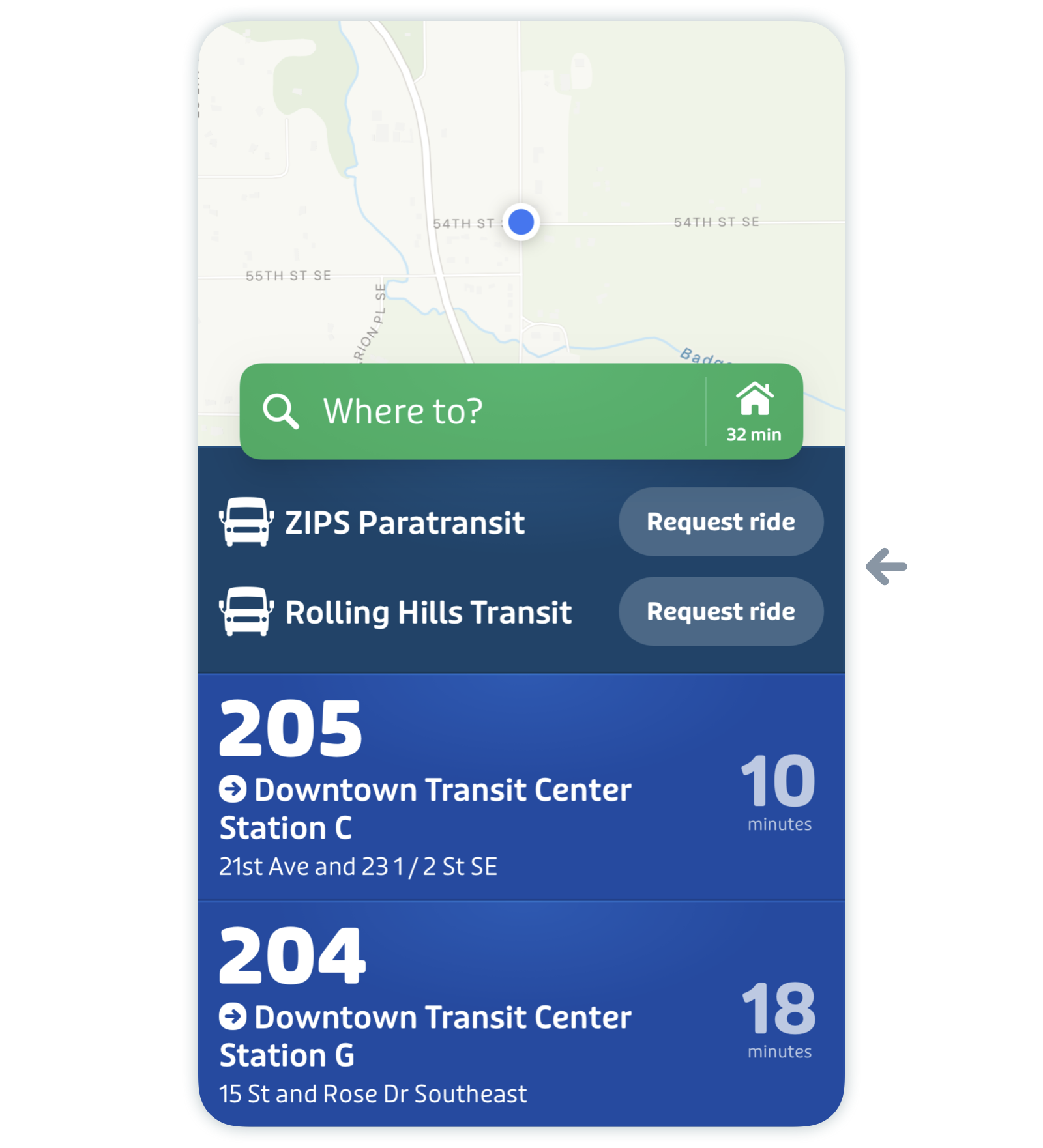 Otherwise, you can plan a trip as you usually would. If your trip is eligible for on-demand, you will see it in your trip results. Tap on the trip you want to take to bring you to the trip details screen.