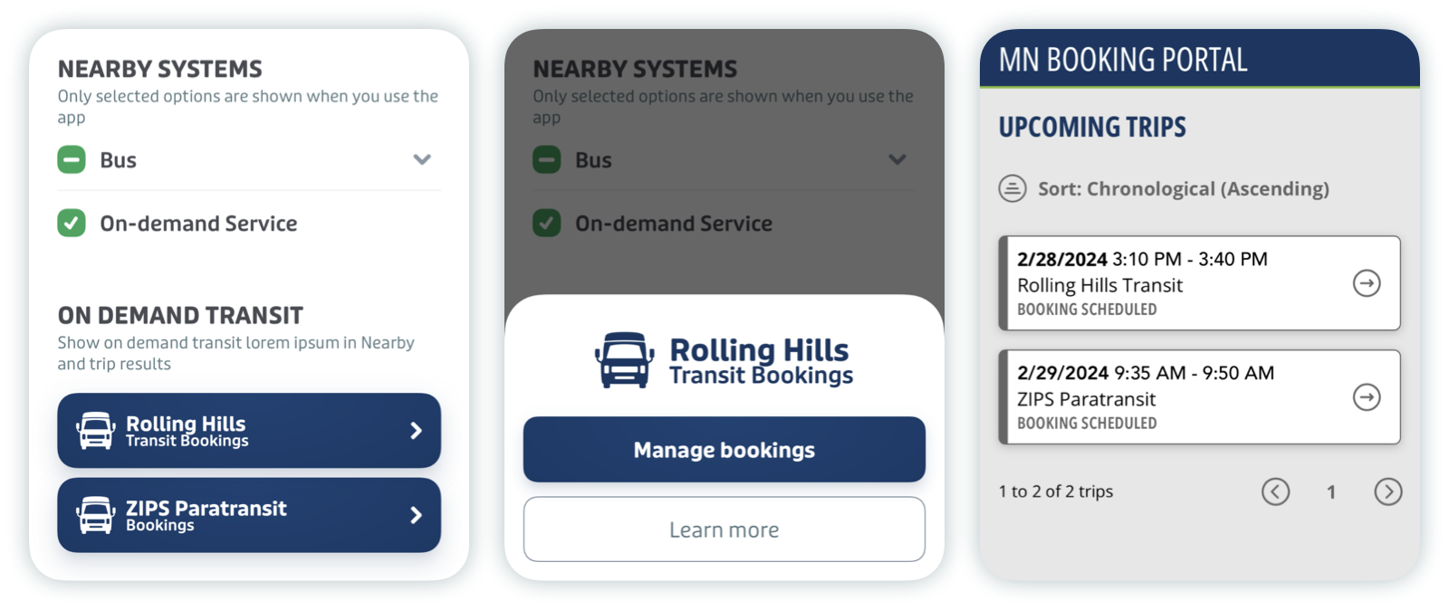 When you submit the trip request, its status will appear as "Pending" until reviewed and accepted by your transit agency, and will then change to "Booking accepted".