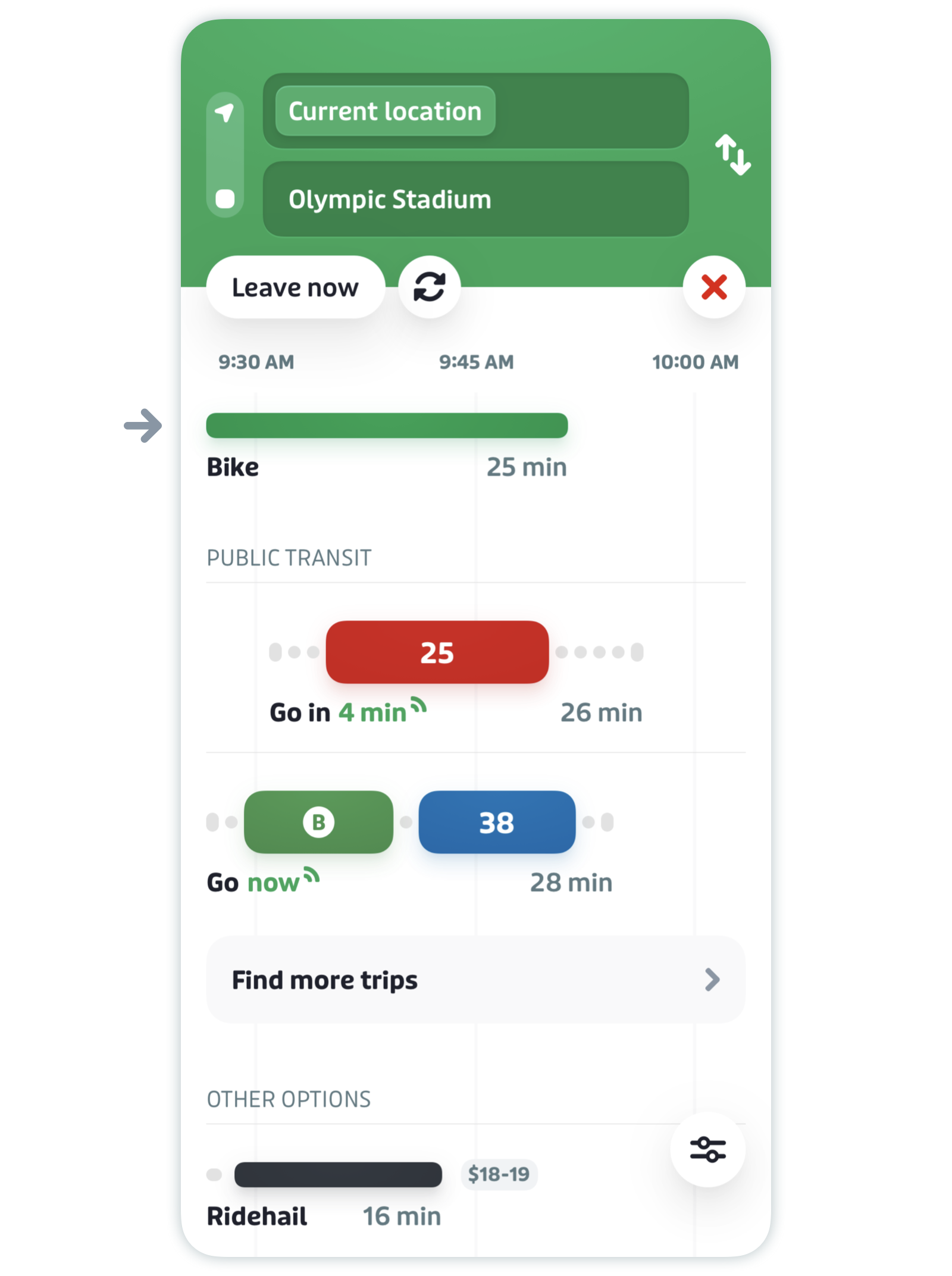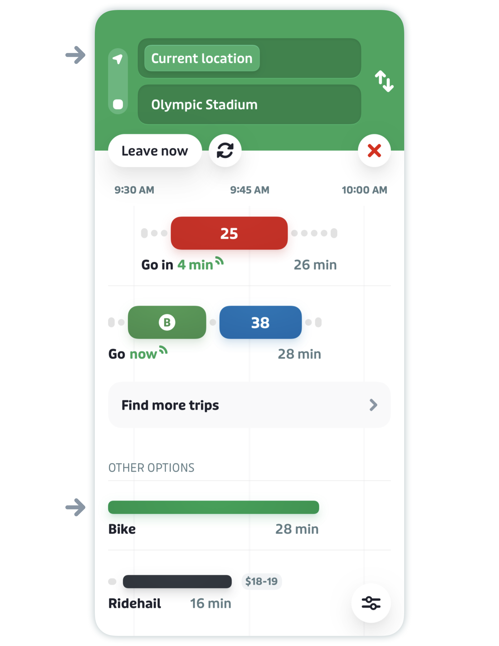 - Prioritize biking results in the trip planner by adjusting your commuting preferences.