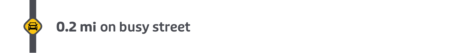 Grey line with the yellow car warning symbol: busy road or highway