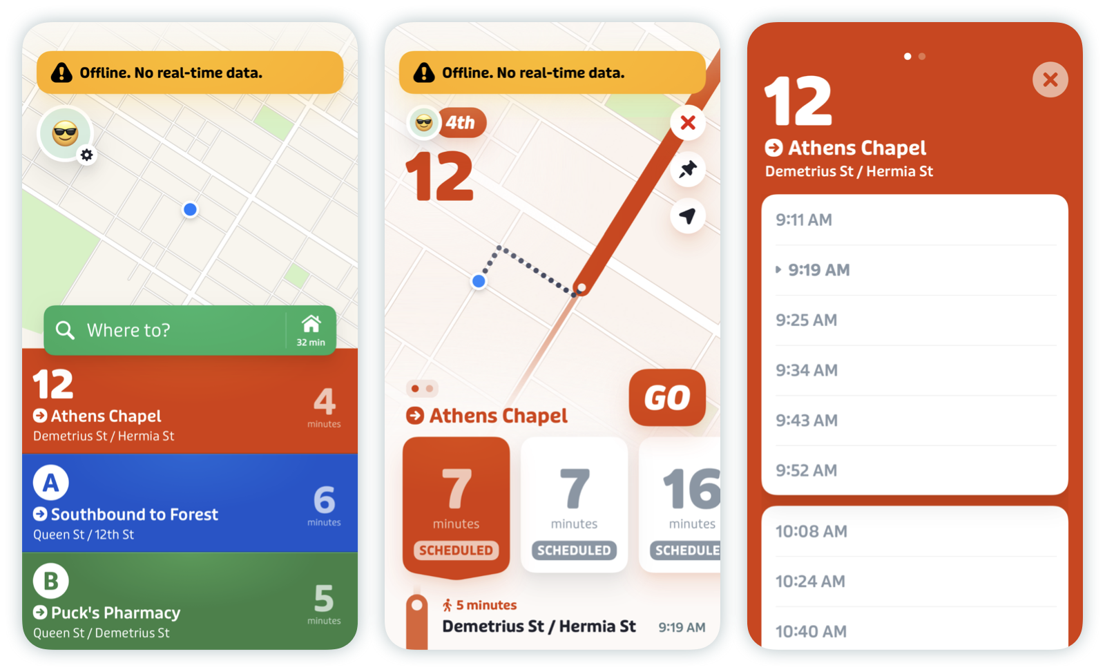 If you’ve opened Transit while connected to the internet, Transit automatically downloads the schedules in the background so that you can access them without internet later on.