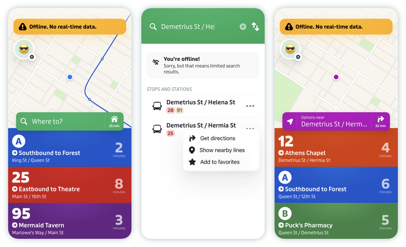 Many Transit features do work offline, allowing you to use the app even when you don't have access to wifi or data. Here's a breakdown of what changes once your phone goes offline: