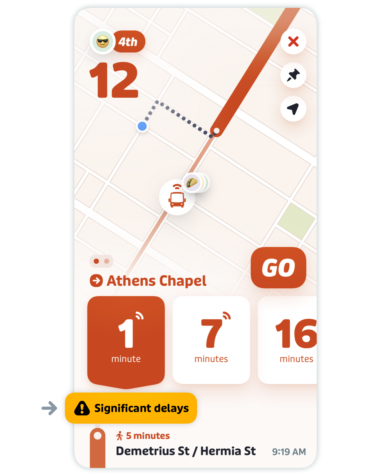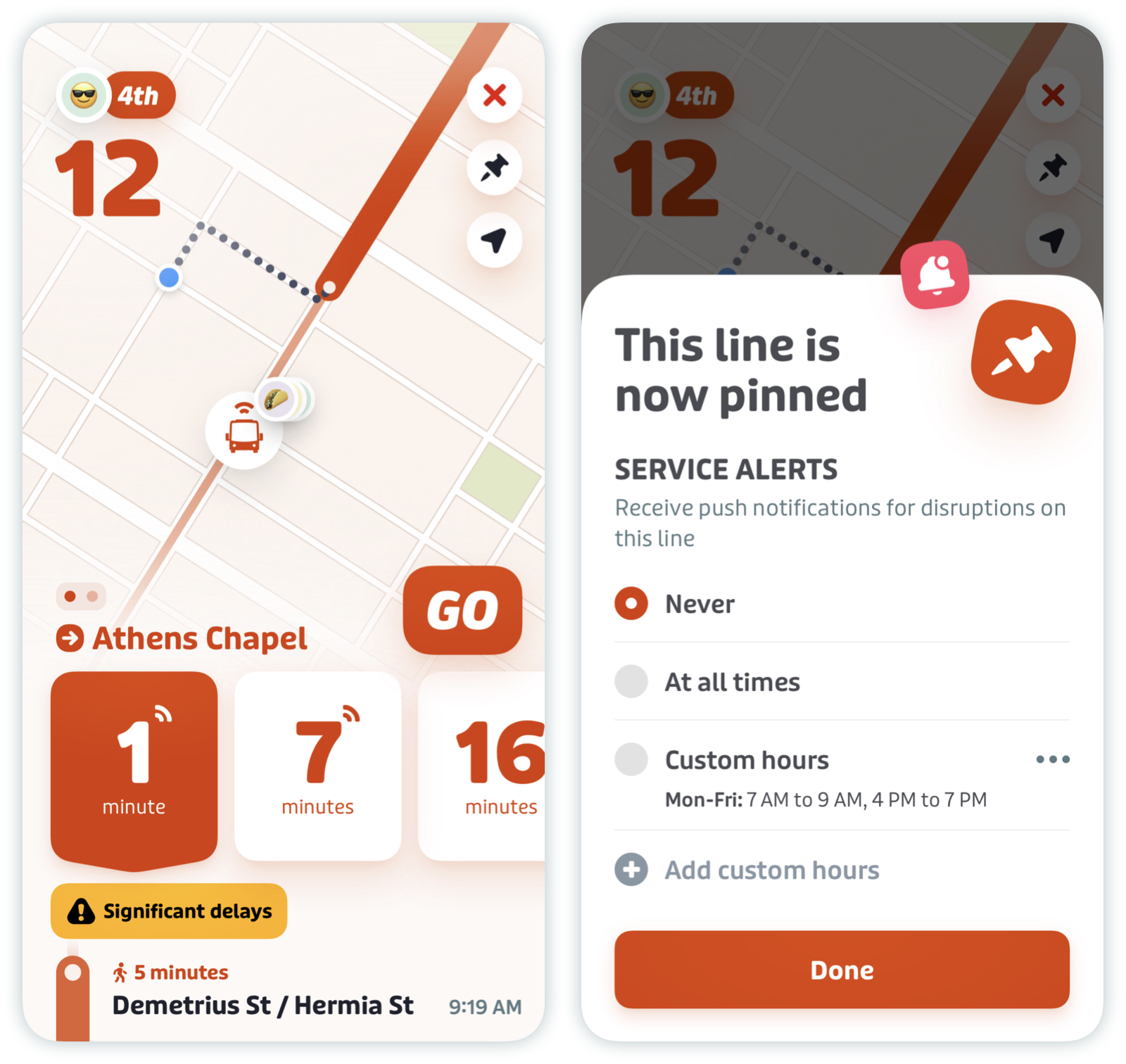 To subscribe to service alerts, simply pin the transit line you’d like to receive service alerts for — tap the pin icon and select during which hours you’d like to receive notifications.