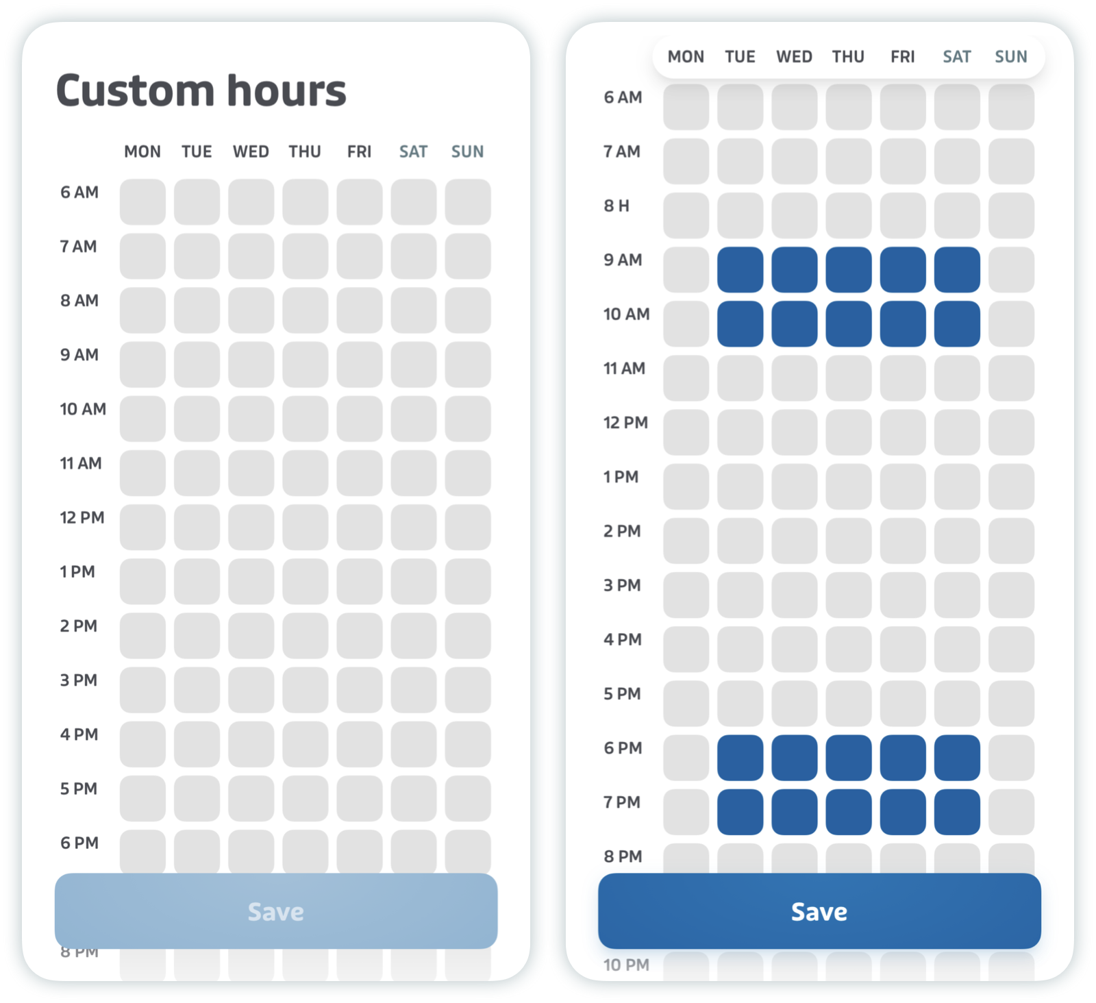 Pro tip: Tap and drag to quickly select many hours at a time.